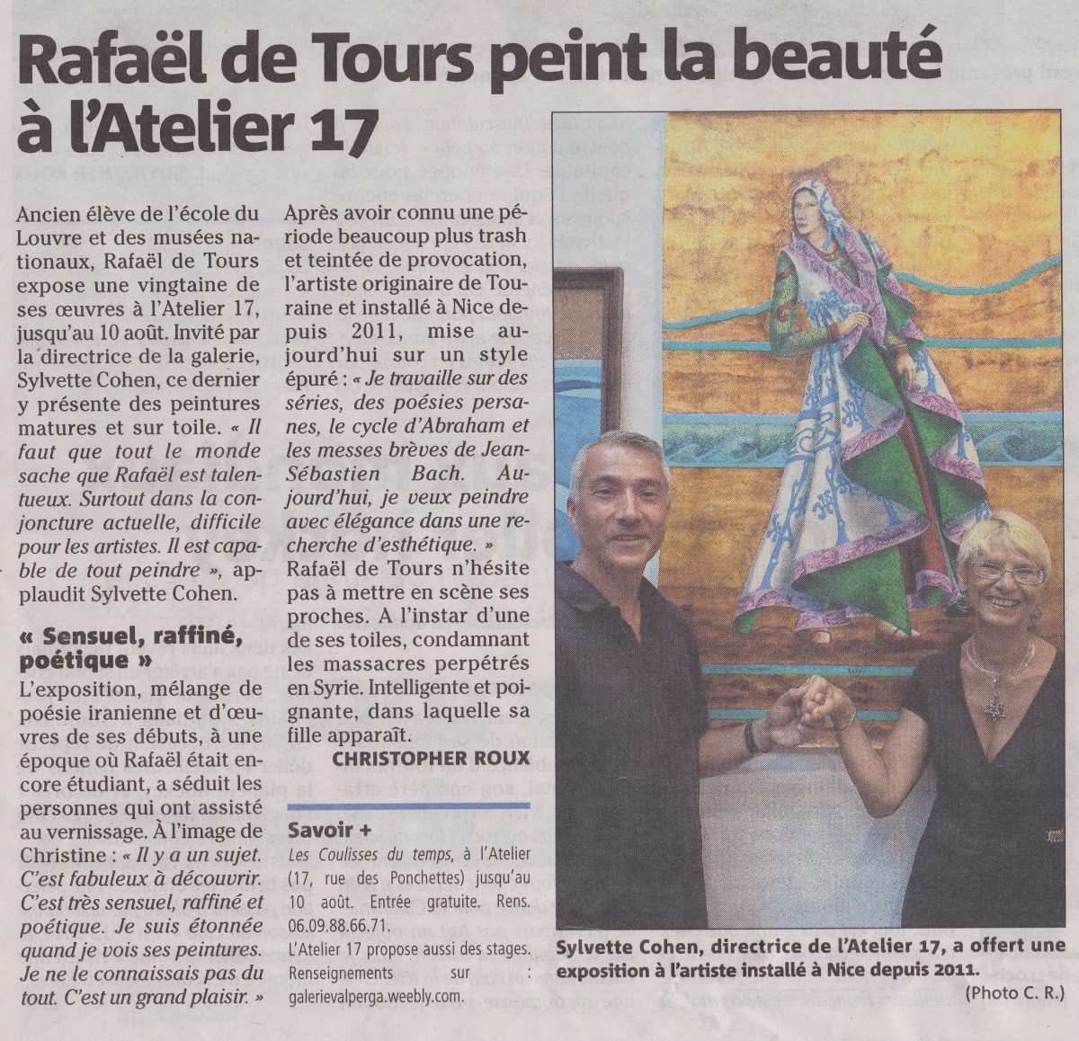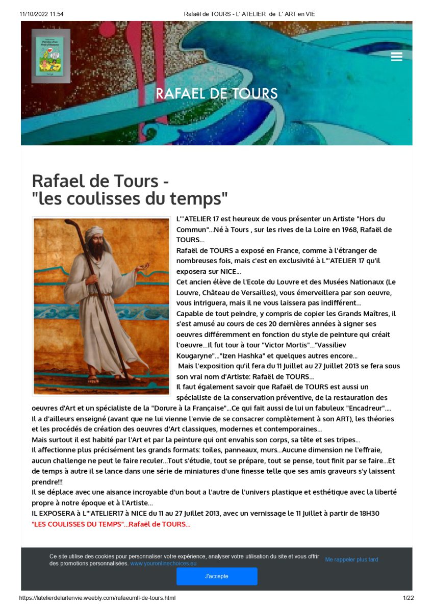 Past and Recent Exhibitions: France since 2008 China since 2022 to 2026, Title: « On the road again », (Hong Kong, Shenzhen). Participation to Encyclopedias since 2008 Galerie Presentielle Leucate Aude 2010 Cannes Enchères vente publique 2012 L'Atelier de l'Art en Vie, commissaire expo Mme Sylvette Cohen - Nice 2013 Nice Matin 29 Juillet 2013 Presentielle Galerie Nice juin 2014 Messe des artistes Nice 02 2014 Messe des artistes Nice 02 2014 VIP invitation to Kuala Lumpur 2015 Encyclopedias (participation) 2008 - 2015 Encyclopedias (participation) 2008 - 2015 Encyclopedias (participation) 2008 - 2015 VSD Magazine 09 2016 Encyclopedias (participation) 2008 - 2015 SRV Gallery Chine Shenzhen Hong Kong 2022-26 SRV Gallery Chine Shenzhen Hong Kong 2022-26 Magazine Summer 2022 Hong Kong Shenzhen